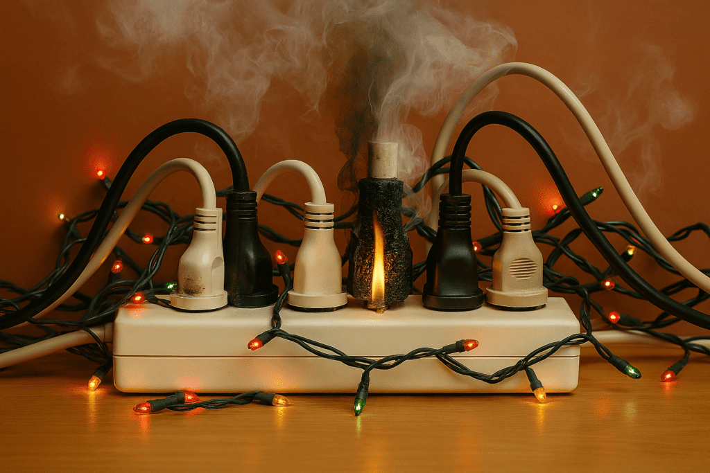Jedním z nejčastějších problémů je přetížení zásuvek nebo prodlužovacích kabelů. Mnoho domácností kombinuje světelné řetězy, dekorace, svíčky na baterie i další elektroniku v jedné zásuvce. Zátěž se tak rychle může dostat nad limit.